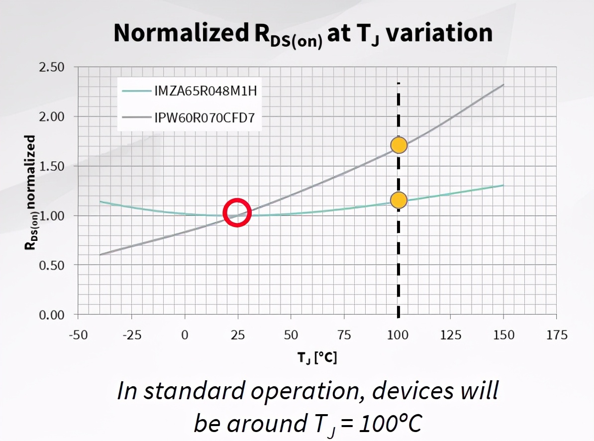 图1:CoolSiC器件温度对RDS(on)的影响比CoolMOS小。